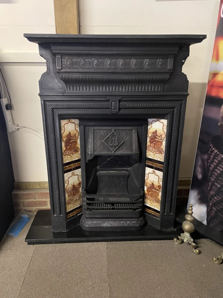 Stunning complete and original cast iron combination fireplace with original tiles. Â The only part missing from this lovely fireplace is the damper flap which could be made up in metal very easily.