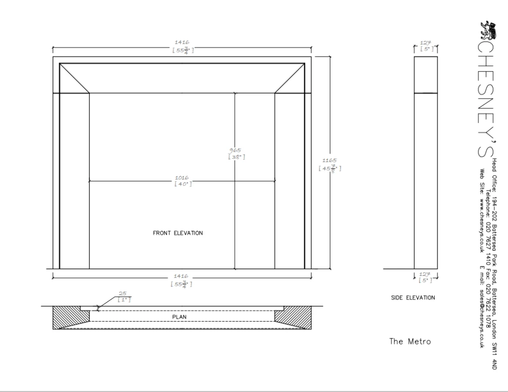 Shown with industrial steel slips, limestone hearth and the Fibonacci fire basket, all from the Chesneys range.