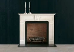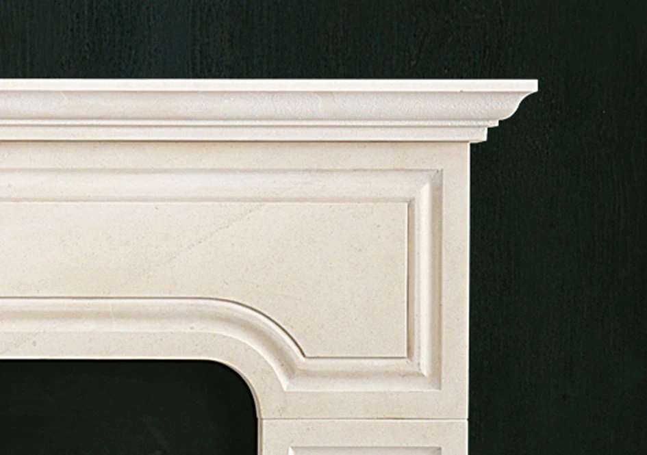 A Limestone chimneypiece of early 18th century design with incised panels and a central keystone very often found in panelled rooms.