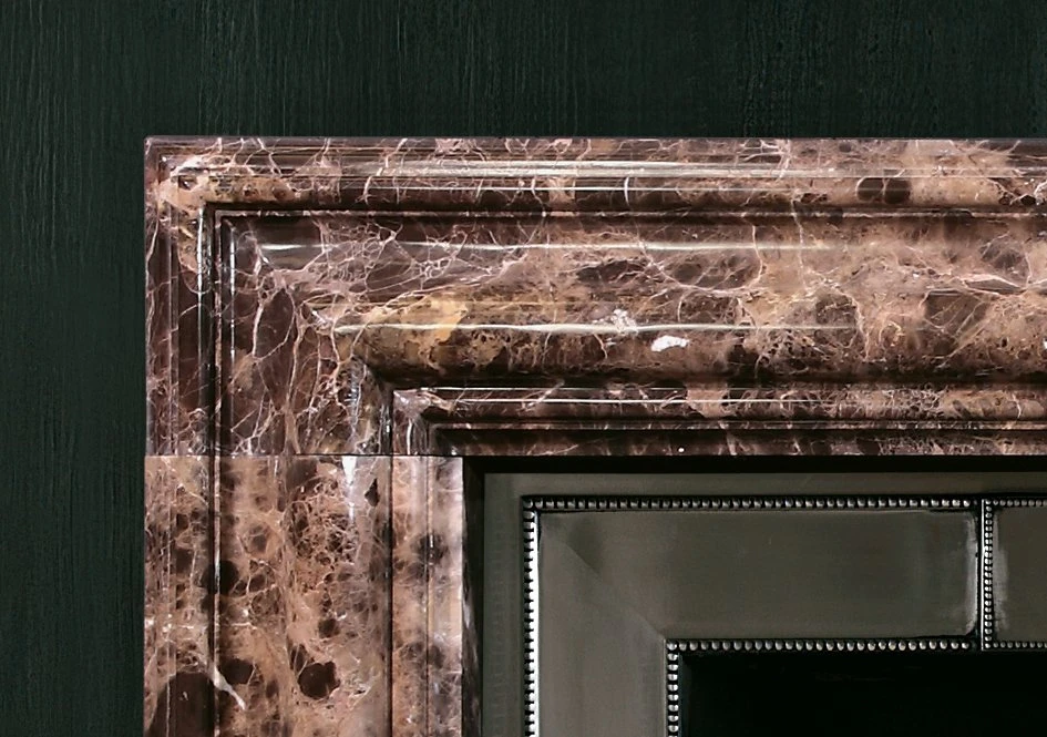 A bolection mould chimneypiece of generous proportions in Emperador marble.