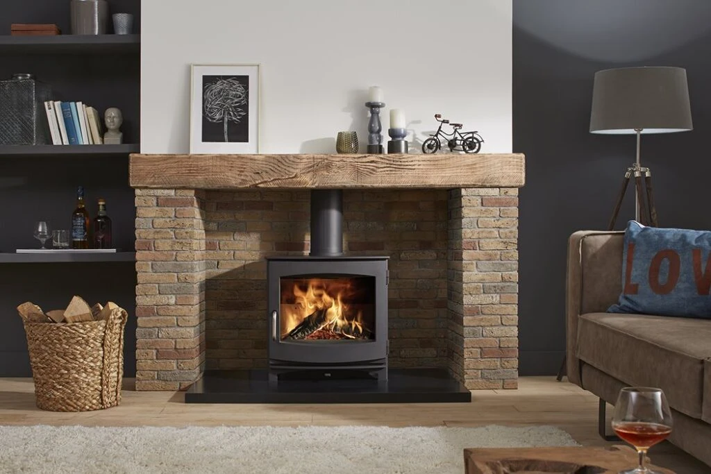 Ivar 8, Low is a versatile stove with external air connection that can burn wood, and when the Mulfti-Fuel kit is added, coke or coal. It has a large viewing window and can be freestanding or installed into an inglenook chimney opening. With a heat output of 10 kW, it can easily heat a large room, but its low emissions qualify it for DEFRA approval in smokeless zones.