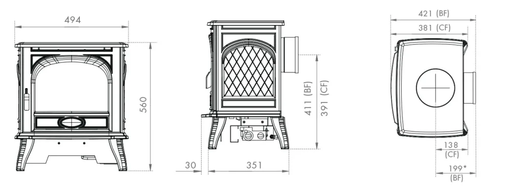 - Conventional flue models with coal-effect