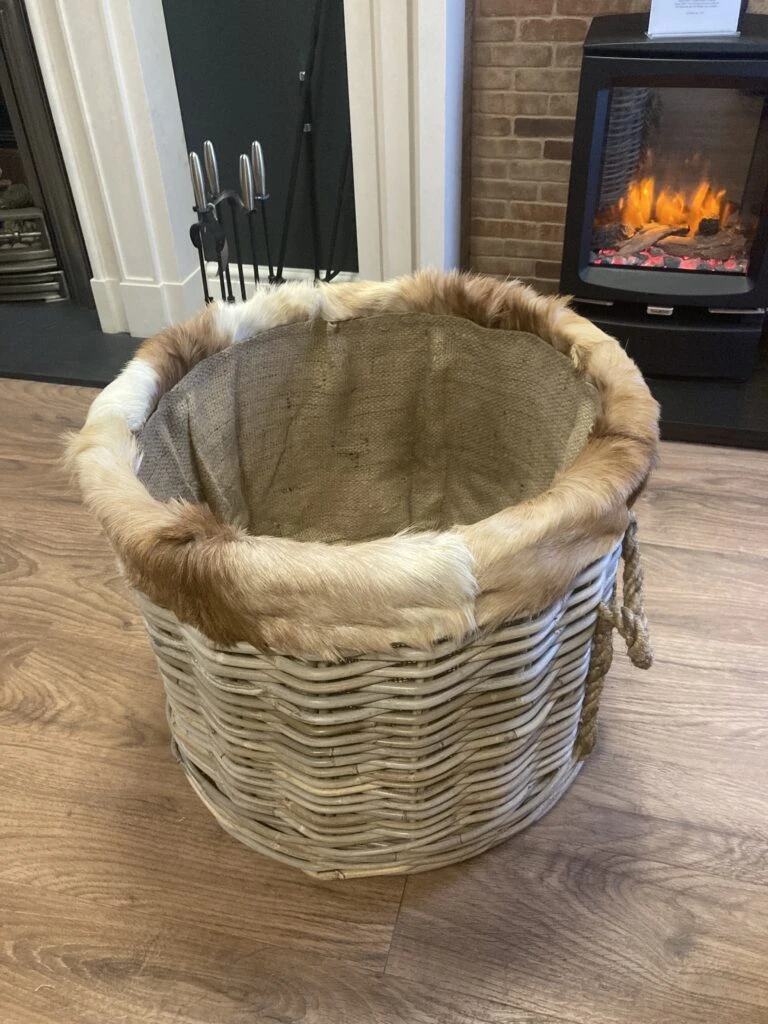 Stylish and durable, this circular log basket is perfect for storing logs in any fireplace or hearth. With a strong woven rattan construction and easy-carry handles, it allows you to move your logs easily. The fur lining keeps it neat and tidy, preventing wood debris from spilling onto the floor. It’s great as a storage solution for logs and also useful when transporting kindling.