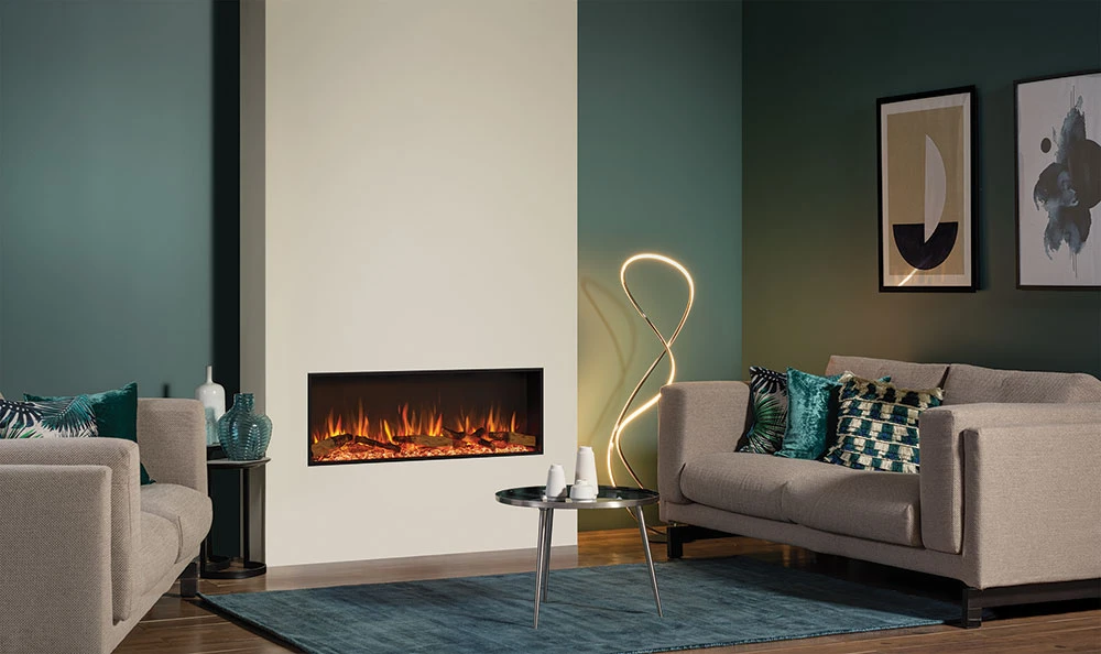 In addition to the multiple flame effects and vibrant Chromalight® up-lighting, eStudio inset electric fires feature the option to upgrade your centrepiece with the LED Mood Lighting System extends its ability to create the ultimate ambience. Featuring the same 13 Chromalight® colours as the eStudio fire itself, and all controllable via the remote handset, the optional Mood Lighting System can be placed almost anywhere you see fit – and is a favourite for feature media wall installations.