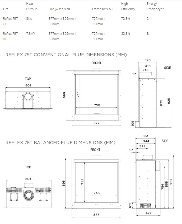 Gazco’s Reflex 75T Reflex Key Details: