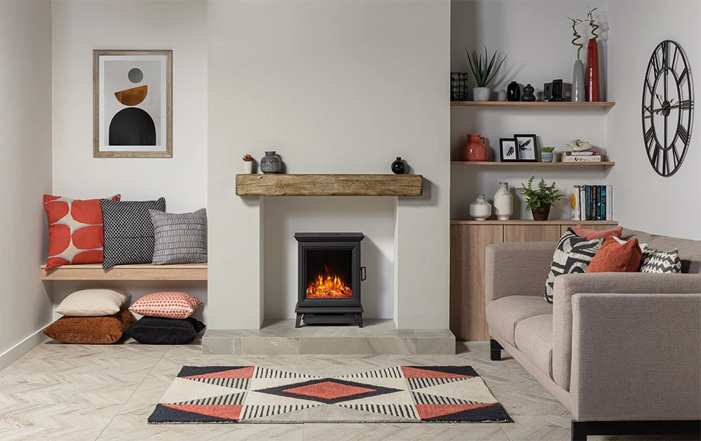Unlike a wood burning or gas stove, the  Sheraton 5 Electric doesn’t require installation or a chimney system, since it doesn’t produce any combustion gases. Just plug in to a three-pin plug socket to enjoy the beautiful visuals and ambient glow.