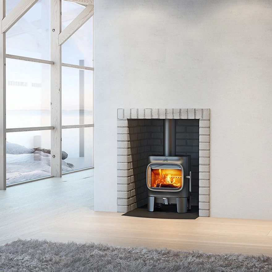 The Jøtul F105-series has a confident and friendly character. In spite of its size the Jotul F105 woodburner with short legs is a wood stove that stands out from the rest. Some of the distinctive design elements of this wood stove include the large horizontal glass door, which offers a great view to the fire and the intuitive air control that make it very user friendly.
