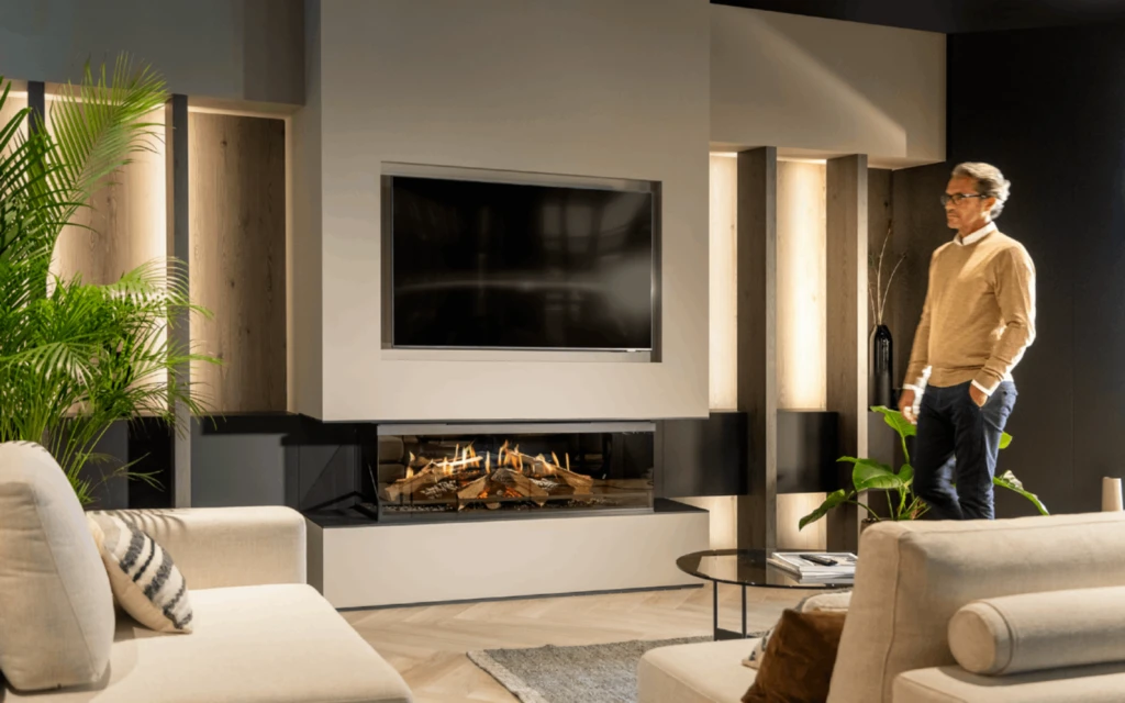 The six-position Atmos lighting, hybrid glowing embers, and anti-reflective function enhance the visual appeal. Immerse yourself in the experience with full sound effects and dual HD flame technology. Elevate your space with the Kalfire E-one 130S, where luxury and sustainability meet in perfect harmony.