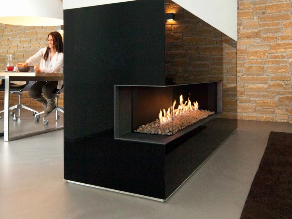 Like the Prestige burner, this innovation was designed and developed by Kalfire.‎ It allows an elongated, horizontal fireplace (up to 170 cm in width) that suits contemporary interiors perfectly.‎ A closed gas fireplace equipped with a 3D burner produces flames that are virtually indistinguishable from those of a wood fire.‎ Fireplaces with a 3D burner are supplied with a ceramic log set as standard, but it is also possible to choose an exclusive log set or a bed of white, beige or grey stones or cryptonite.‎