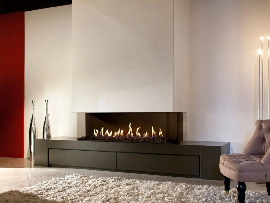 Like the Prestige burner, this innovation was designed and developed by Kalfire.‎ It allows an elongated, horizontal fireplace (up to 170 cm in width) that suits contemporary interiors perfectly.‎ A closed gas fireplace equipped with a 3D burner produces flames that are virtually indistinguishable from those of a wood fire.‎ Fireplaces with a 3D burner are supplied with a ceramic log set as standard, but it is also possible to choose an exclusive log set or a bed of white, beige or grey stones or cryptonite.‎