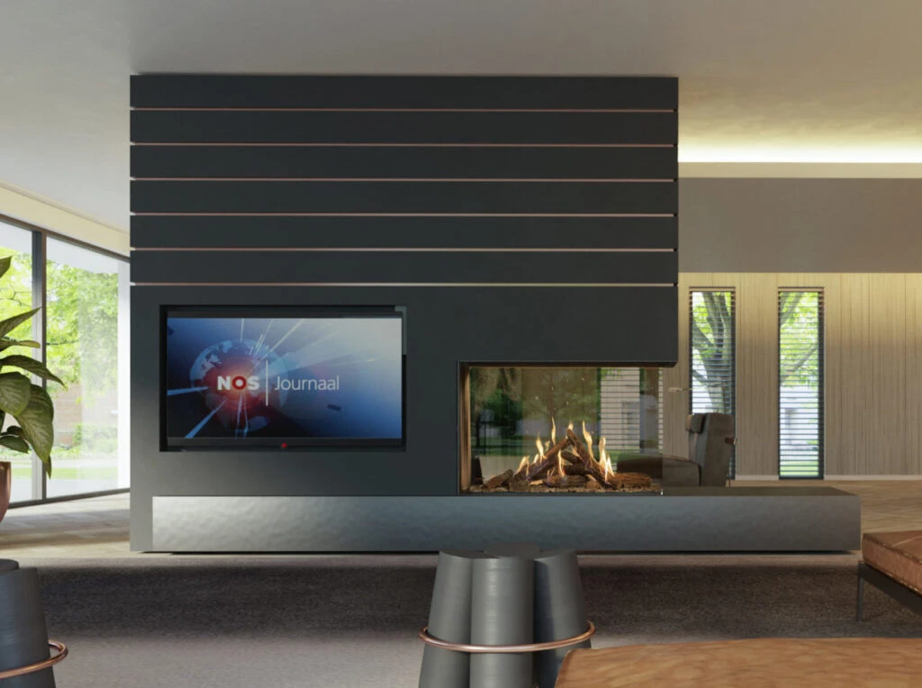 The Kalfire GP115/75R is an 115cm wide, 3-sided room-dividing balanced flue gas appliance, with 75cm high glass, available in Natural Gas or LPG, with unique Prestige ECO-Burner and radiographic remote handset.