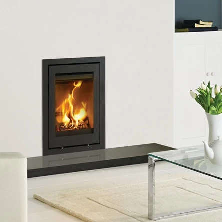 The marketβs most elegant and stylish fireplace insert. Besides selection of sizes of stoves it is also possible to customise the frame around the stove, so the frame can cover e.g. a large integration hole. The clean design of the handles gives the fireplace insert a beautiful finish and a unique experience of the fire without the problems of an open fireplace.