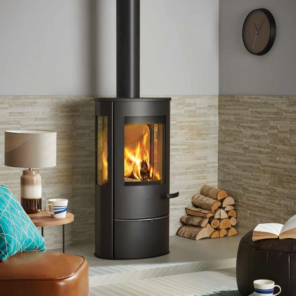 Liva wood burning stoves offer a broad range of styles and options, incorporating a number of innovative features such as a soft-close door mechanisms, a cool-to-touch door handle and easy to use air control. There is also the option of upgrading Liva stoves with Lotus’s unique Comfort Eco Boost as well as the built-in option of an external air supply to minimise internal drafts. Presenting a choice of high, medium and low height models to suit a range of interiors. All Liva stoves are available with side windows for a panoramic flame view, with both 5 and 6 models also offered with steel sides.