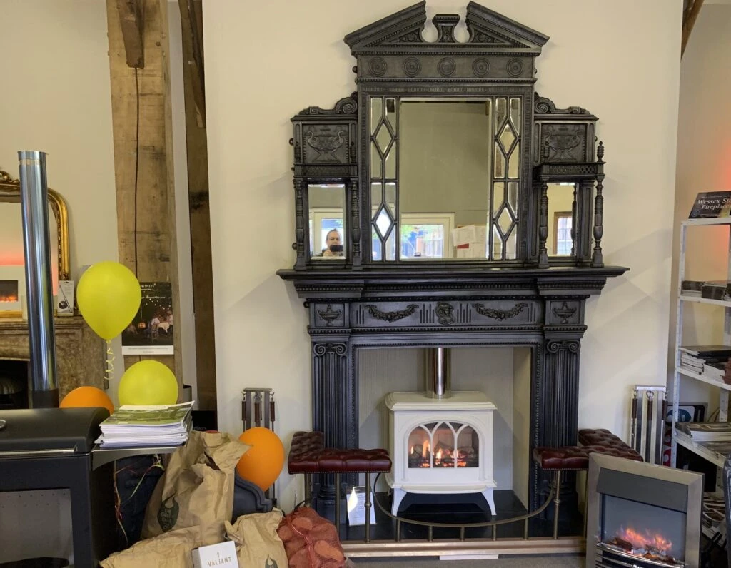 This magnificent Original cast iron fireplace requires a grand room. Â It is currently on permanent display, and taking pride of place in our Holmwood barn showroom.