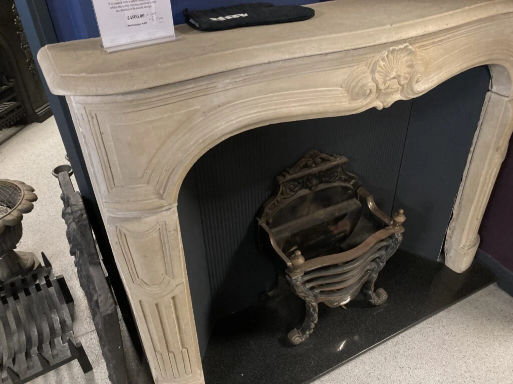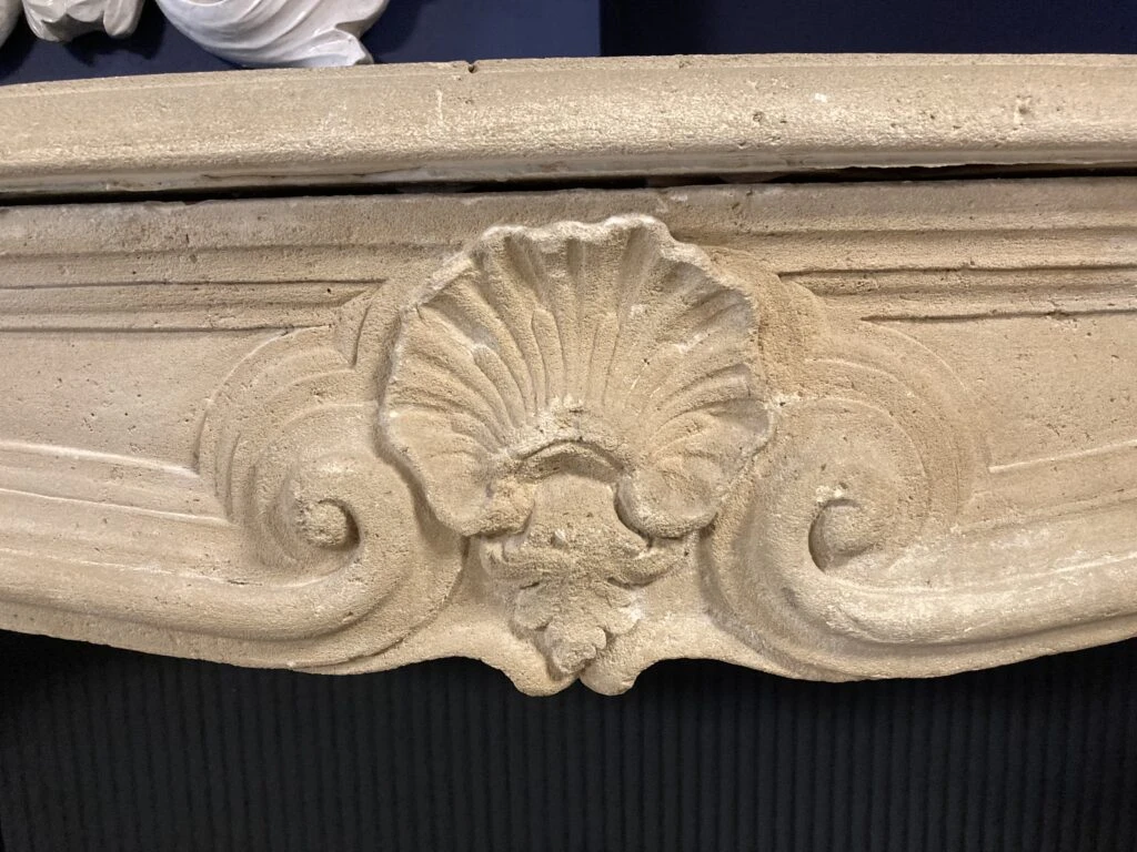 An Elegant Sainte Anne Grand Design Sandstone Chimneypiece (55 inches) in the Louis XV Style.