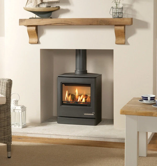 With a subtle curving door and complementary curved top plate, the Yeoman CL5 gas stove can offer a stylish centrepiece for homes both modern and traditional alike. Featuring a highly realistic log effect fuel bed and superb flame picture to create the same inviting warmth as a wood burning stove.